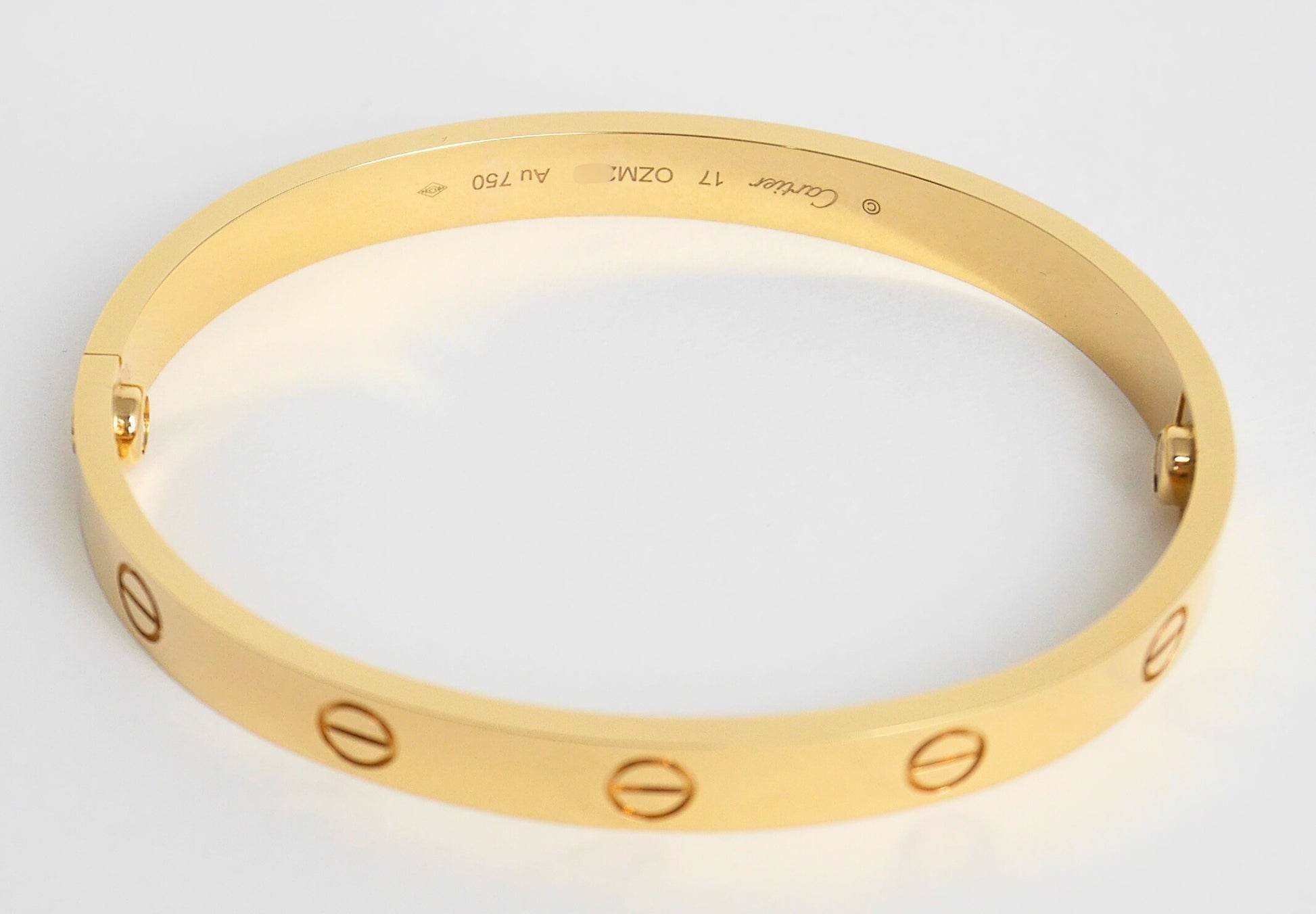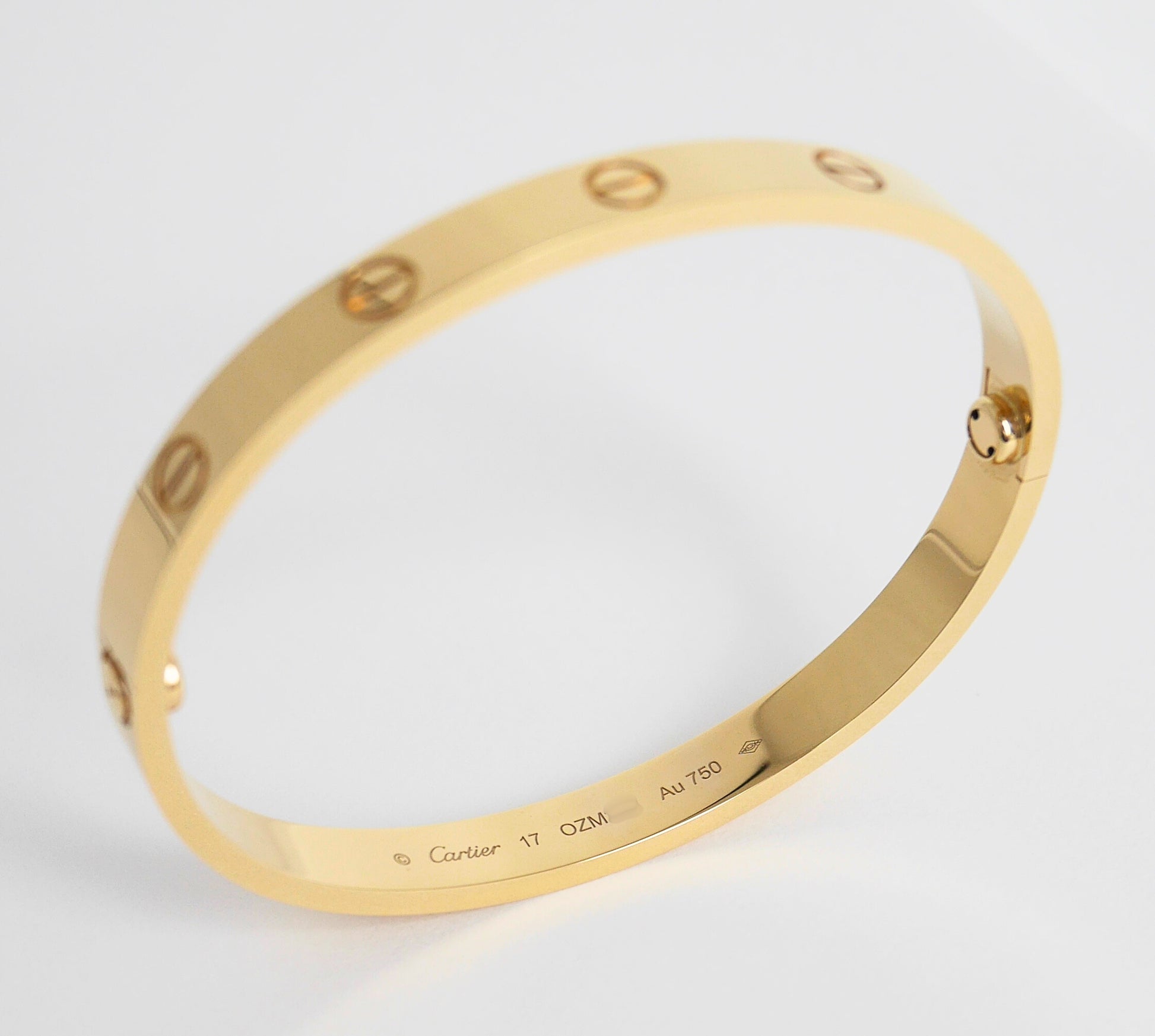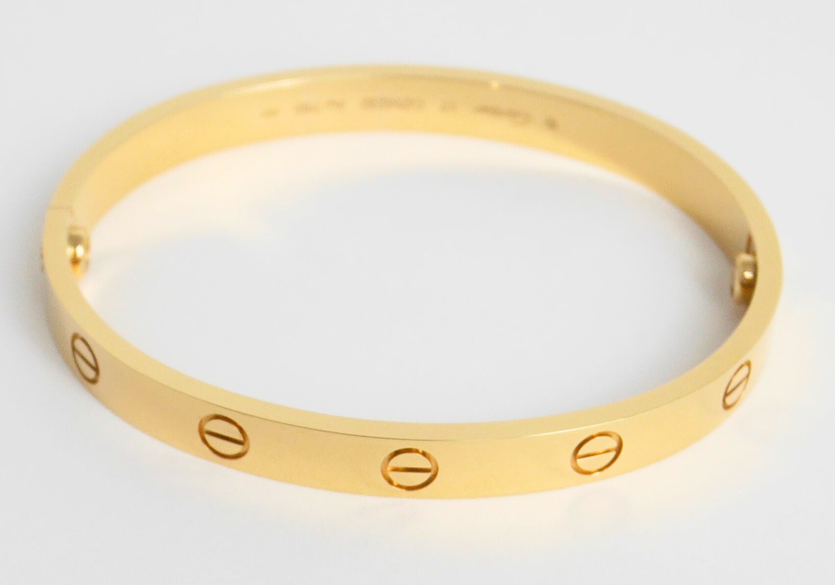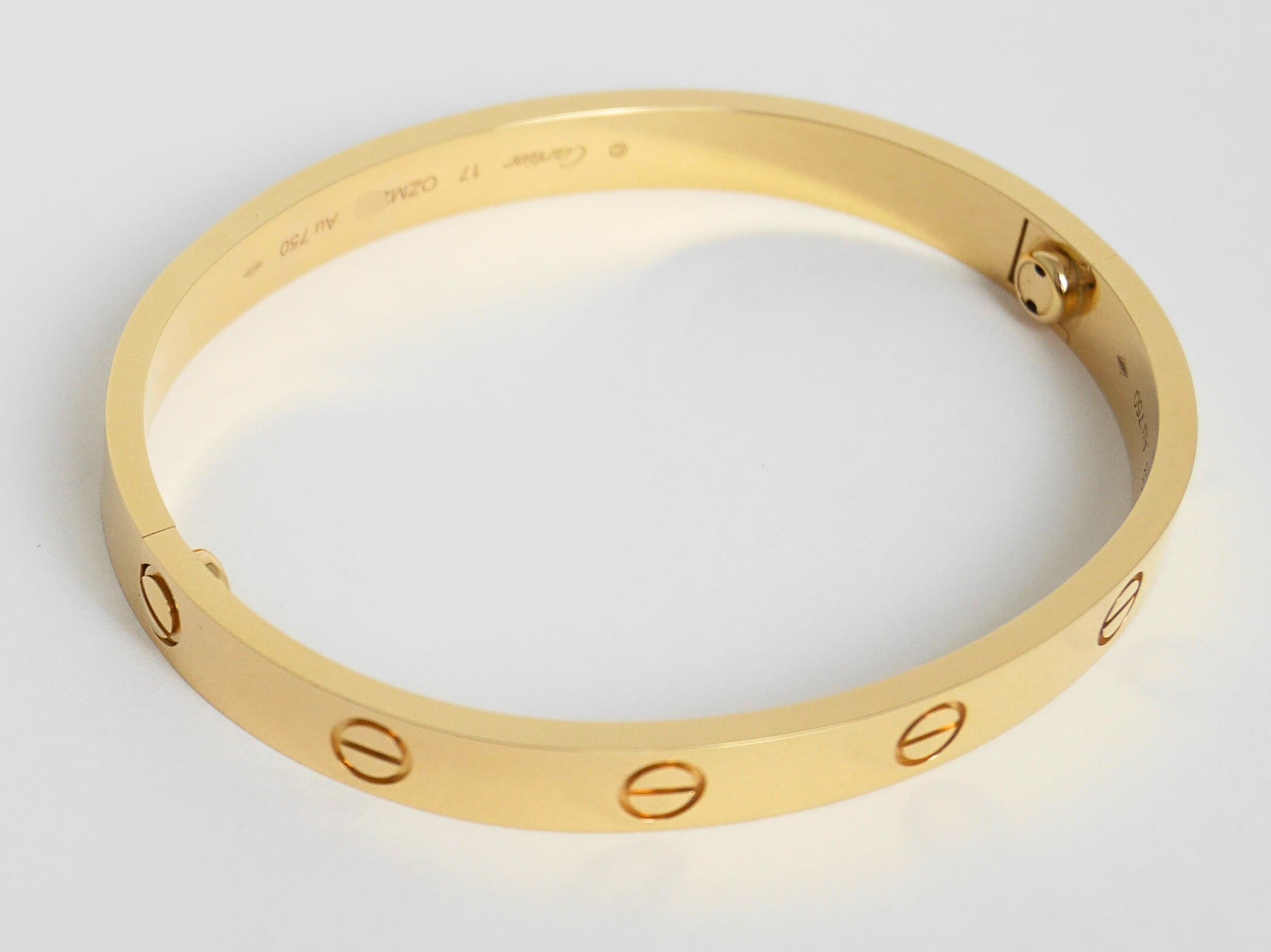 The Cartier Love Bracelet is an iconic symbol of enduring elegance and commitment. Crafted from 18K yellow gold, this unisex bangle features the signature screw motif and a secure locking mechanism that requires a special screwdriver, included with the piece. Designed in the 1970s, the Love Bracelet remains one of Cartier’s most sought-after designs, blending minimalist style with timeless sophistication.