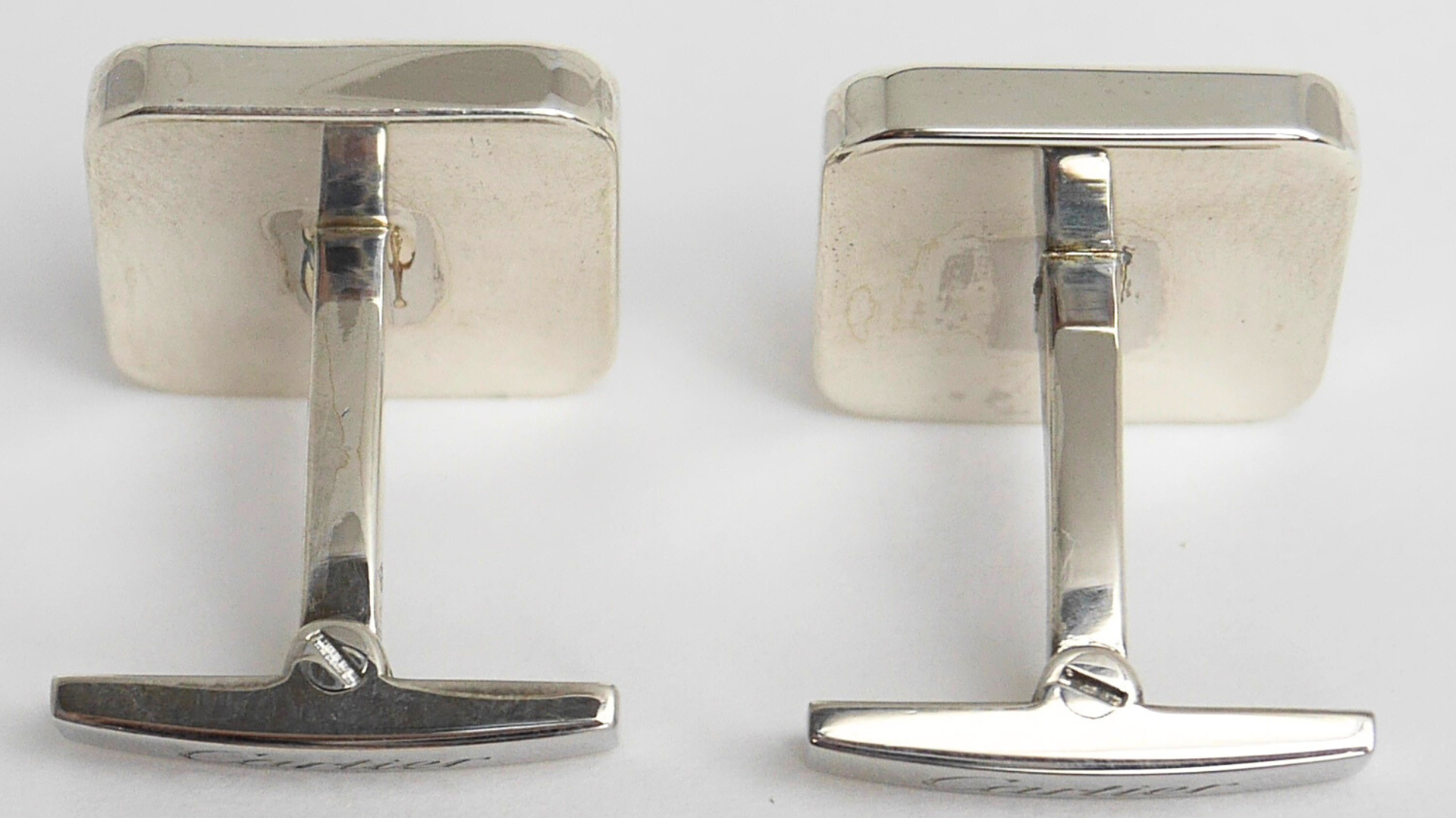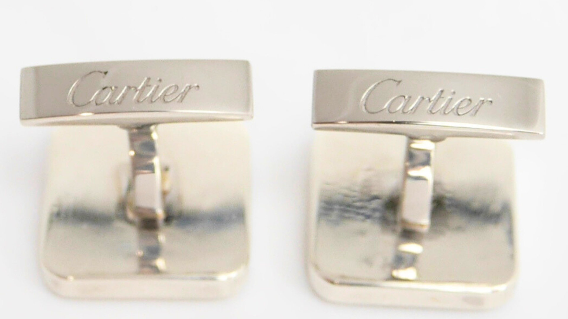 Inspired by the iconic Santos watch, these Cartier cufflinks combine 925 sterling silver with sleek black onyx for a bold, refined look. The signature screw motif frames each square face, echoing Cartier’s timeless design language. Perfect for formalwear or elevating a tailored suit, they’re a sophisticated accessory with classic Cartier craftsmanship.